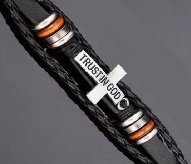 This elegant braided faux leather bracelet makes a statement that goes beyond fashion. When you wear this bracelet you are also wearing your faith and carrying a daily reminder of your strength. It is also the perfect gift to encourage a friend or new Believer of their trust in God.