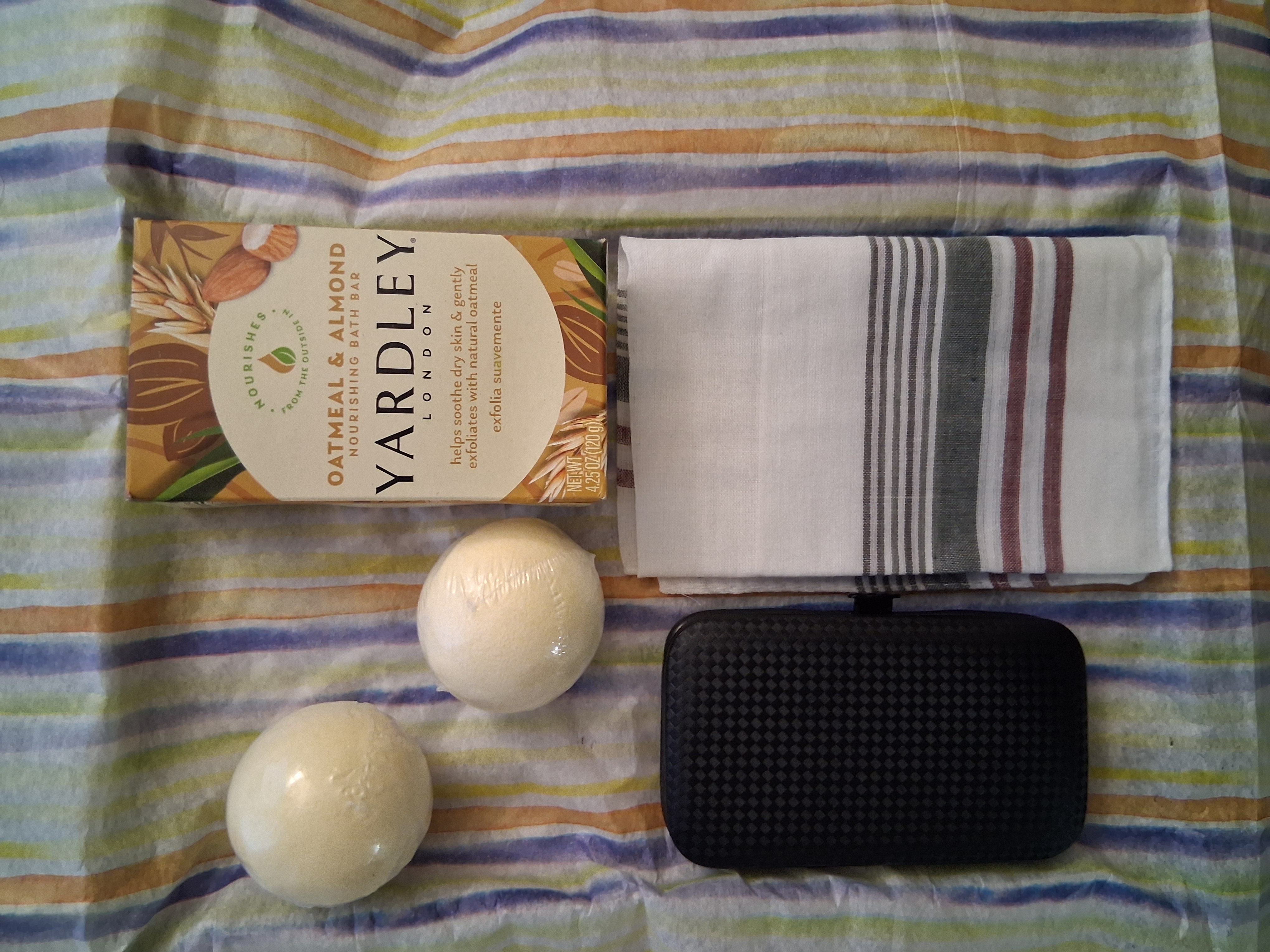 Upgrade his daily routine with a gift that blends personal grooming and skin care. Our Men's Essential Set would help your man, father, grandfather or special friend feel good about himself. After soaking his body in our ginger citrus fragranced bath balls, bathing with Yardley London Nourishing Body Bar and having his nails manicured, all to help uplift his self-care. It's these simple things that count and can be used daily. It is affordable. It is essential and you would buy it just because he is special. Gift box and soft tissue paper included in the price along with: